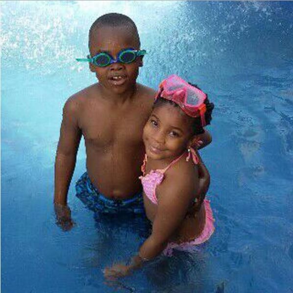 ‘Fun times at the pool – Tamarlily and @ememisong‘s son Kay Kay. #adorablekids having #bigfun,’ she captioned the photos.