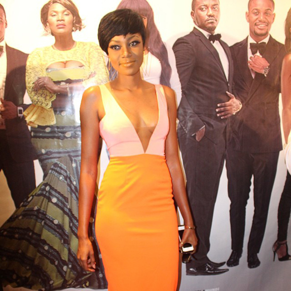 Ghanaian actress and producer, Yvonne Nelson, went the daring lane, showing a sizeable portion of her cleavage in the colour block dress she wore on Friday, September 5, 2014 at the premiere of her movie, Single, Married and Complicated.