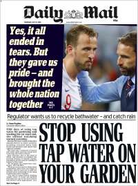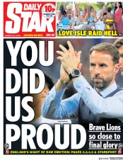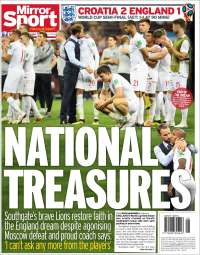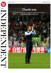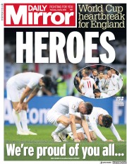 A look at the front pages of major newspapers in England on Thursday morning shows an overwhelming support for the team as they prepare to head back home after their third-place game with Belgium.