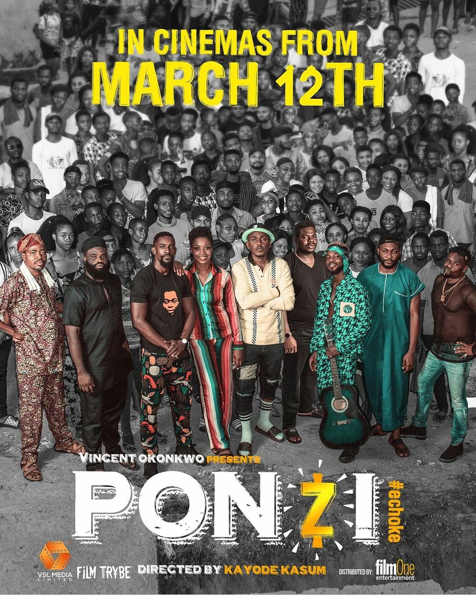 Ponzi, a comedy film rolled out by VSL Media and Film Trybe, premiered on March 12, 2021. The movie stars Uzoamaka Aniunoh, Timini Egbuson, Mawuli Gavor, Tope Tedela, Zubby Michael and Immaculate Oko-Kasum. There are also appearances by Nollywood veterans Jide Kosoko and Chinyere Wilfred, as well as popular Instagram comics Broda Shaggi and Debo Macaroni.