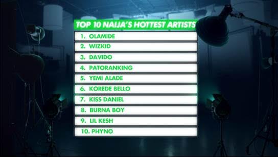 The show ranks the year’s ten biggest performing artists in Nigeria using a list of six criteria namely: Style, Impact, Sales/Success, Buzz, Music and Intangibles.