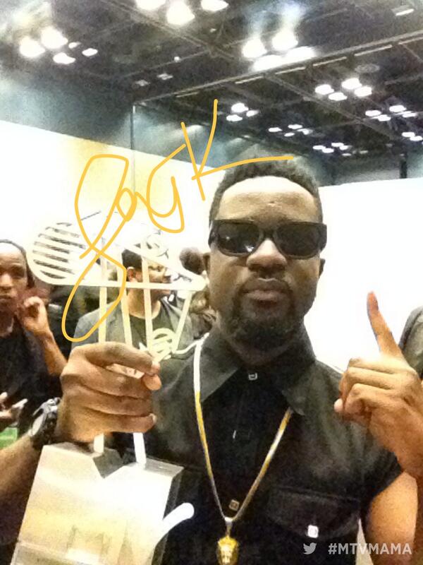 ‘I wanna say a big thanks to MTV. We made it. Big shout out to the other nominees also‘, Sarkodie said as he picked up his award at the show, which held at the International Convention Centre, Durban on June 7, 2014.