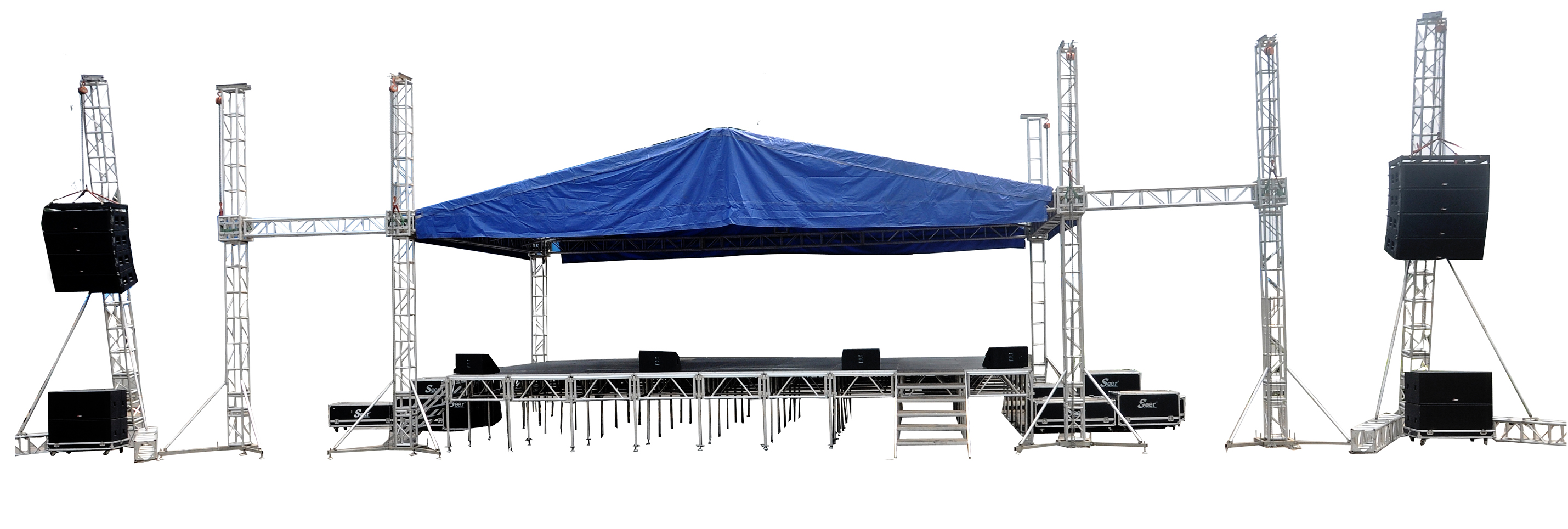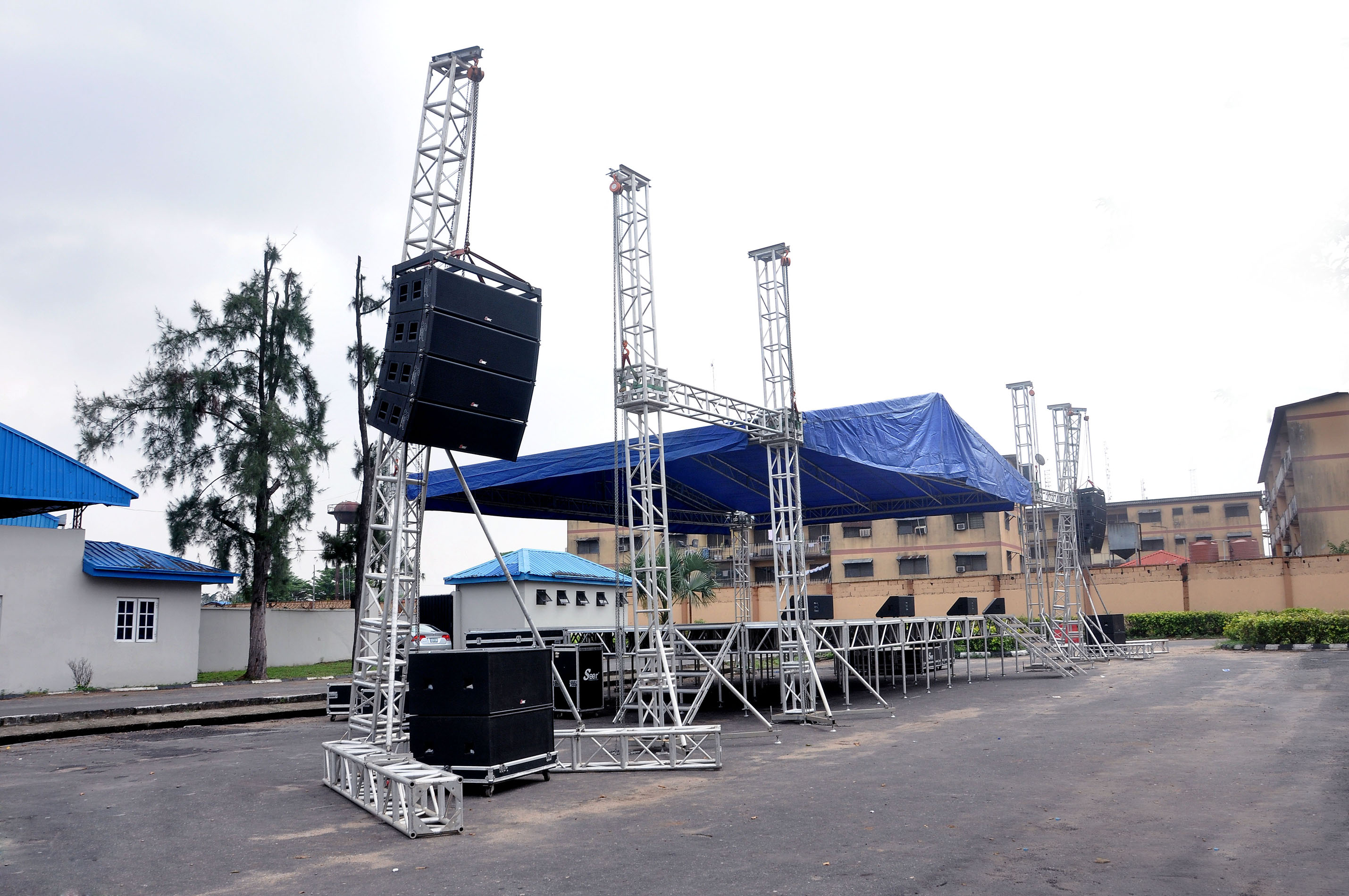 The all-sliver out-door collapsible stage which is not common among the entertainers in the country because of his unique specification, ‘wide 24ft, length 40fts with the height of 30fts from ground level), is used for big concerts, political rallies and crusades in open fields.