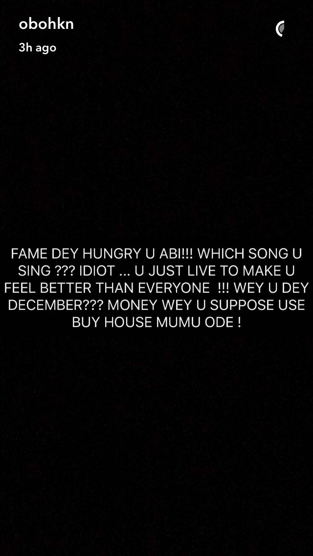 However, he threw some subliminal Davido’s way having posted some cryptic messages on Snapchat saying he’s wealthy and not known for spending his father’s money.