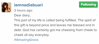 The pretty movie star has said she’s ‘fulfilled’. Although the identity of twins’ father remains shrouded in secrecy, Nadia took to her Instagram account to express her gratitude to God. And it’s easy to feel her warmth.