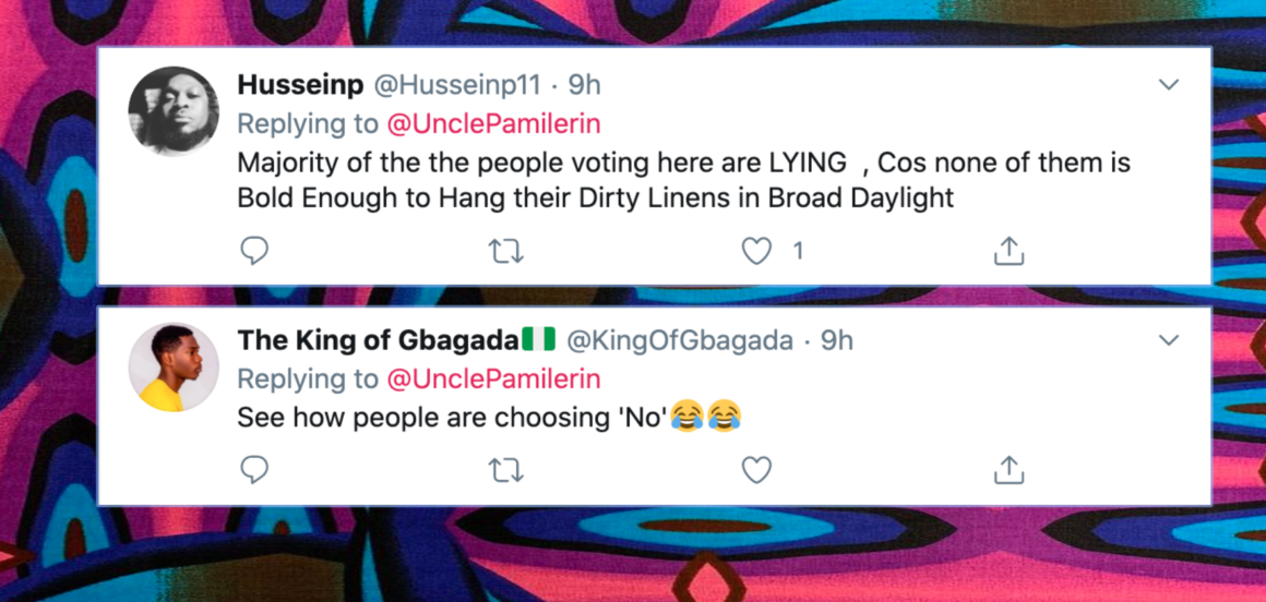 2. The Uncle Doubting Thomases: A few were convinced that other twitter users were lying out of their noses and didn’t have the courage to ‘fess up! Ahn, ahn, calm down na. MYOB!