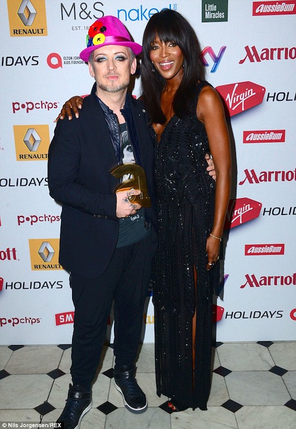 The 44-year-old supermodel gushed over the ‘Karma Chameleon’ hitmaker as she made her way into the event at the Whitehall Banqueting Hall in London on Tuesday, October 14, 2014 and confessed she didn’t have to think twice about getting on stage to honor the legendary 80s singer.