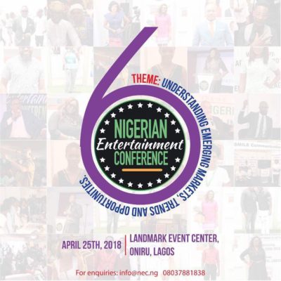 The conference which will hold its familiar venue of Landmark Event Centre, Oniru on Wednesday, April 25th, will be the biggest yet and for all stakeholders who have interest in Nigerian entertainment, it is an event not to miss.