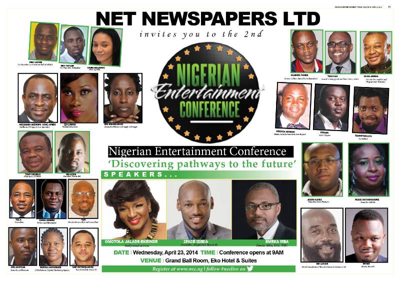 The second edition of Nigerian Entertainment Conference holds on April 23, 2014; this year proves to be more exciting with line-up of profound speakers and panellists.