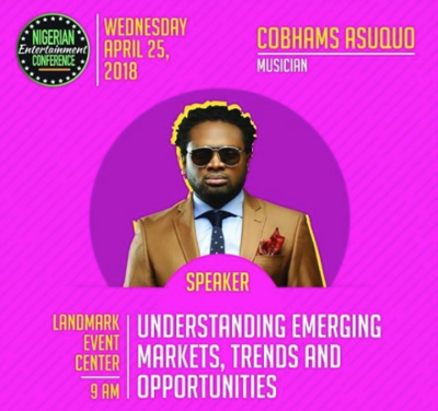 Veteran Nigerian singer, songwriter and producer Cobhams Asuquo will be speaking at the sixth edition of the Nigerian Entertainment Conference #NECLive6 which is set to hold on Wednesday (April 25).
