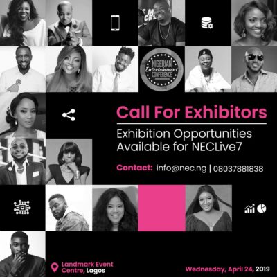 Exhibitors wishing to apply for an installation space/booth at #NECLive7 should send an email to info@nec.ng or call 08037881838 on or before April 01, 2019.