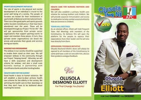 He has already unveiled the All Progressives Party as his political party and is gunning for the LAHA complex through the Surulere Constituency. He says parts of his programme include a sports development initiative, a widows’ aid programme, healthcare for the elderly, healthcare for nursing mothers and children, town hall meetings and an open door/feedback initiative.