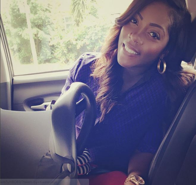 Tiwa returned to the country on Thursday, September 24, 2015 aboard a Virgin Atlantic flight from London. She was in company of her mum, Celia Savage and son.