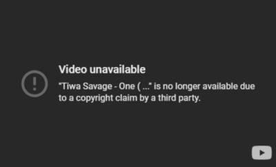 On Wednesday morning, Nigerians woke up to discover that the song had removed from Tiwa Savage’s YouTube page. The message displayed read thus: “Tiwa Savage One is no longer available due to a copyright claim by a third party”, leading fans to believe Danny Young had made good his threat.