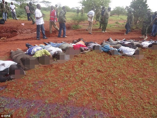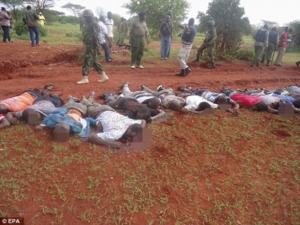 The gunmen reportedly attacked a bus in northern Kenya at dawn on Saturday, November 22, 2014, identifying and killing 28 passengers who could not recite an Islamic creed and were assumed to be Christians.