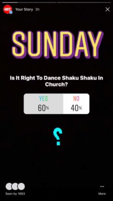 On Instagram Story, 60% of our fans voted ‘Yes’ to the question while only 40% voted against dancing Shaku Shaku in the house of the Lord.