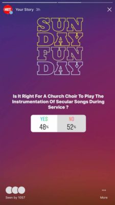 While we were at it, we also decided to find out what our fans felt about church choirs playing instrumentals from secular songs during ministrations. A majority of our followers on Instagram were not fine with the concept, 52% of them to be exact. The remaining 48%, however, saw nothing wrong with a little secular inspiration during service.
