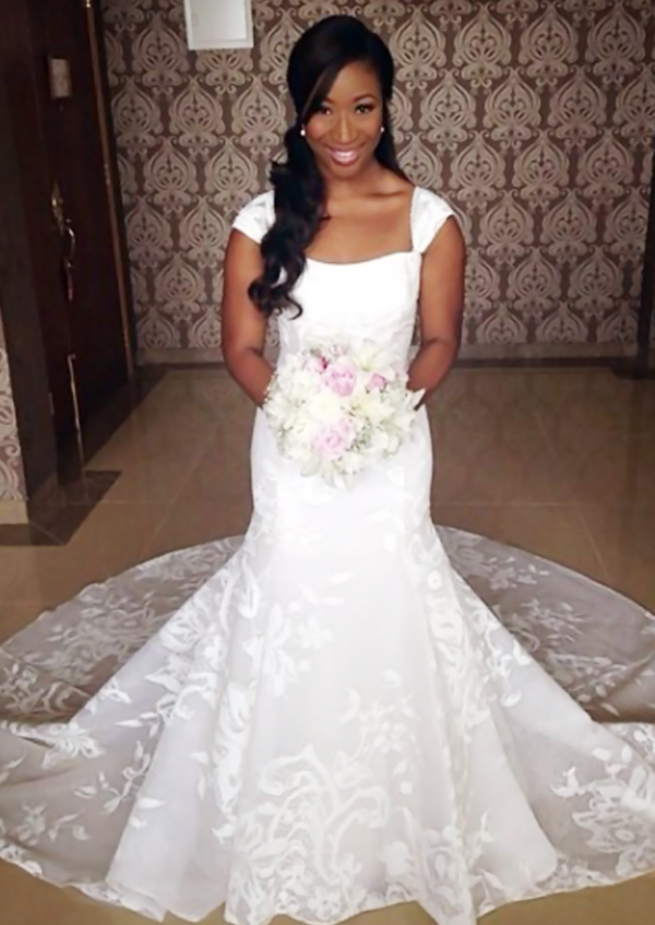 Expectedly, the surprise didn’t affect her choice of wedding dress as she sparkled in a gorgeous lace and satin custom dress made by her designer friend, Kunbi Oyelese, who owns the April by Kunbi fashion line.