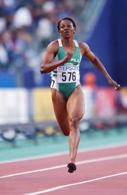 - Mary Onyali-Omagbemi: This absolute legend of a woman is the first Nigerian to compete at five consecutive Olympics during her run from 1988 – 2004. She has two Olympic bronze medals, 7 individual All Africa Games medals, one Commonwealth title and a couple of 4x100m gold medals at the All Africa Games to her name. Now 51 years old, she has served as the Special Adviser (Technical) to the Director General of the National Sports Commission and also on the consultation committee for a proposed sports university in Nigeria, according to Wikipedia. She was recently appointed as a Special Adviser to Nigerian Sports Minister, Sunday Dare.