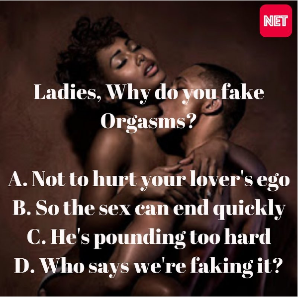 @gbemisolasho: ‘I fake it, just for him to think I enjoy the sex, but hardly will u find naija guy that will fuck u, till u reach orgasm. What most of them are after is for them to cum and leaving the lady horny. Weather she cum or not is none of their business.’
