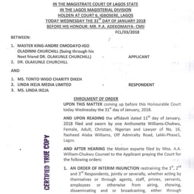Furthermore, Churchill’s lawyer, Anthonette Williams-Chukwu includes Linda Ikeji Media Limited and Linda Ikeji in the suit.
