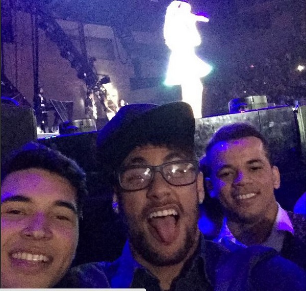 To prove that he was having a great time, the Barcelona striker took to his Instagram account on Monday, February 16, 2015, to post a photo of the ‘Raw’ singer performing on stage.
