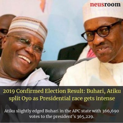 There was little to separate President Muhammadu Buhari and fierce opposition Atiku Abubakar in the presidential poll in Oyo State.