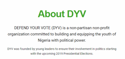 “DEFEND YOUR VOTE (DYV) is a “non-partisan” non-profit organization committed to building and equipping the youth of Nigeria with political power.” is how the initiative describes its MO on social media and on its official website. Exactly how does a non-partisan organization enlist Davido, a partisan campaigneras its ambassador?