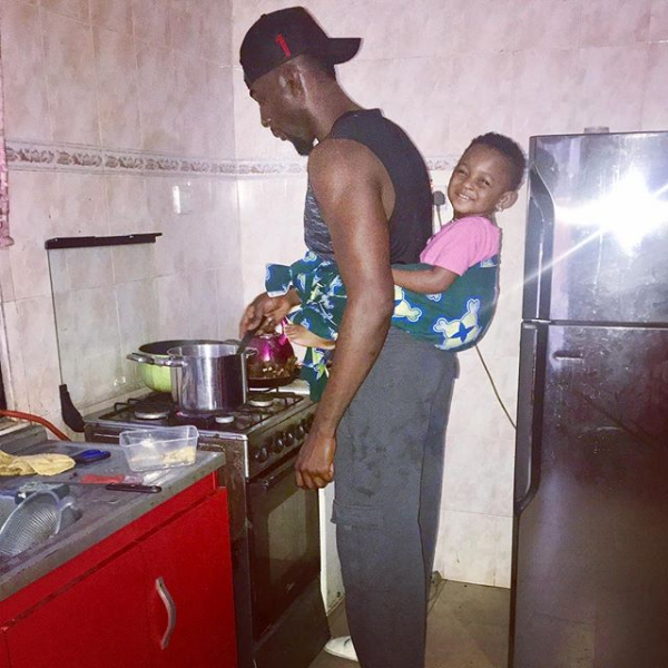 He shared a photo of himself in his kitchen with his daughter at his back and it is so cute.