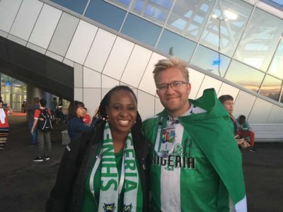 After the draws in December 2017, we all agreed that Nigeria got a very tough group, but the fan in me was optimistic that we would navigate the high tides and come through the group-stage storm, and I travelled to Russia with that buoyancy. I met some Nigerian fans and we sang and danced on the morning of June 16th as we waited to travel from St. Petersburg to Kaliningrad. We were over one hundred fans and we looked imposing and intimidating until we got into the Kaliningrad stadium.