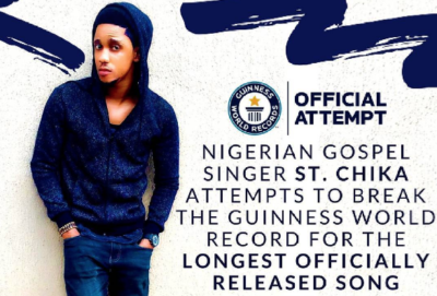 Nigerian gospel singer Chika Nwaogu who goes by the moniker St. Chika has officially broken the Guinness World record for “Longest Officially Released Song”, joining other Nigerians like Kaffy and DJ Obi.