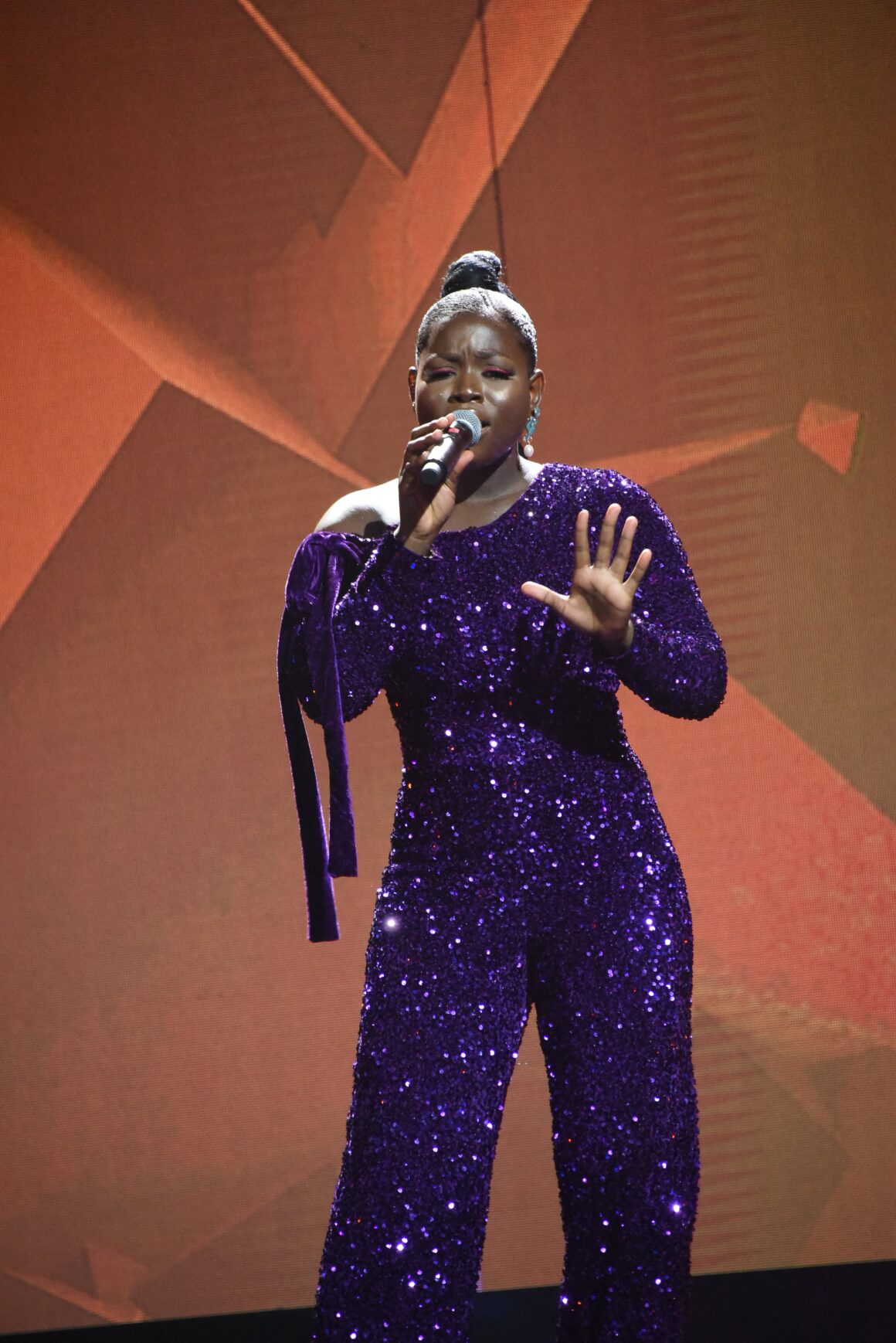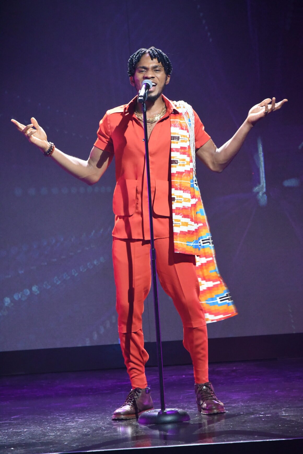 Faith Jason, dressed in an all-red attire, performed a cover of Jon Bellion’s “All Time Low”, the same song that he had performed at the auditions, and the judges loved it even more this time around; Seyi Shay couldn’t contain her excitement.