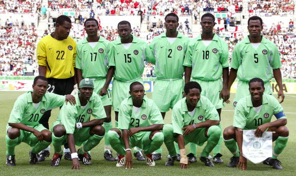 The Eagles’ uniform at Nigeria’s very first outing in 1994 is possibly their most iconic. The green top was complemented with a black round neck and a sleeve with white patterns.