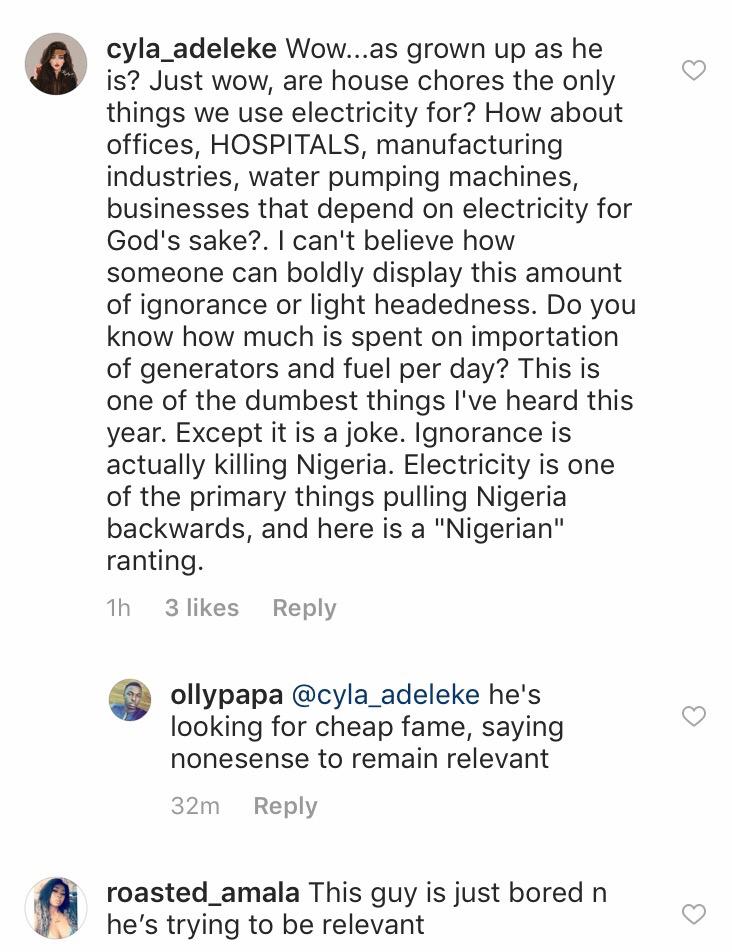 This sparked an uproar on Instagram as Bigbrother fans and Nigerians in general put hm on a full blast for making such disconcerting statements.