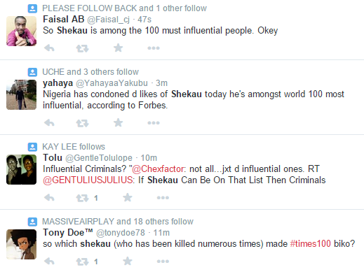 The inclusion of Boko Haram leader, Shekau on the list is generating mixed reactions from Nigerians. While some feel it’s totally wrong for the magazine to have included him, others who seem to understand that like a double-edged sword, influence could be positive or negative, have countered.