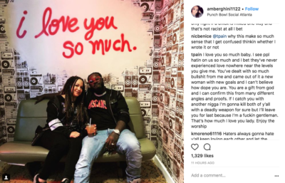 “I love you so much baby,” he wrote. “I see ppl hatin on us so much and I bet they’ve never experienced love nowhere near the levels you give me. You’ve dealt with so much bullshit from me and came out of it a new woman with new goals and I can’t believe how dope you are. You are a gift from god and I can confirm this from many different angles and proof.