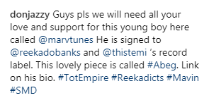 On his part, Reekado Banks seems to have planned it out better. 2017-2018 hasn’t necessarily been a great time for Mavin. As most businesses do, it appears to be going through a phase of recalibration and re-evolution. Don Jazzy recruited Mavin 3.0, a third group of artistes who except for DNA Twins, do not totally fit the typical Mavin mould: rapper Poe and alternative singer Johnny Drille. In that time, Reekado has quietly set his own label, along with his brother who has managed him all this while and waited till the time was right. It also seems as though he had Don Jazzy’s blessings to carry on- in March, he posted a video of Marv, an upcoming singer Reekado was pushing and implored people to support. “Guys we need all your love and support… He’s signed to Reekado Banks and Temi’s record label”.