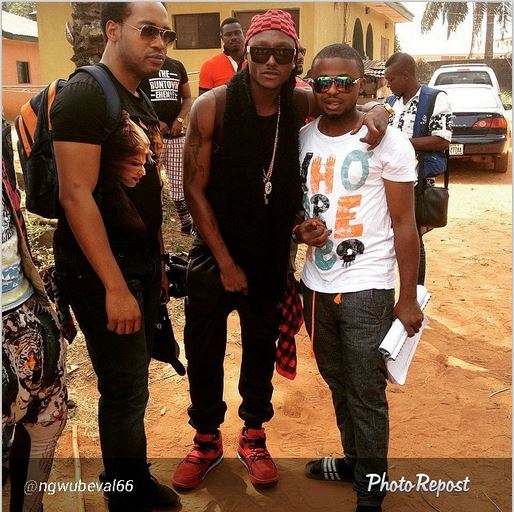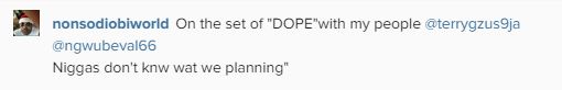 The actor posted the picture with the caption: ‘On the set of “DOPE”with my people @terrygzus9ja@ngwubeval66 …Niggas don’t knw wat we planning.’