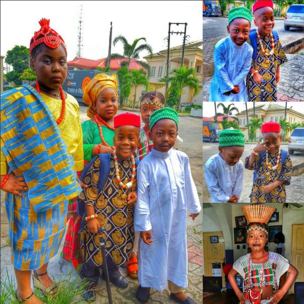 During the week, Sound Sultan’s kids had their school’s cultural day and they ‘repped’ in a Northern Nigeria inspired costume. How lovely!