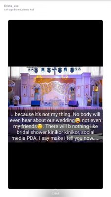 ‘Nobody will even hear about our wedding, not even friends,’ she posted on Snapchat.