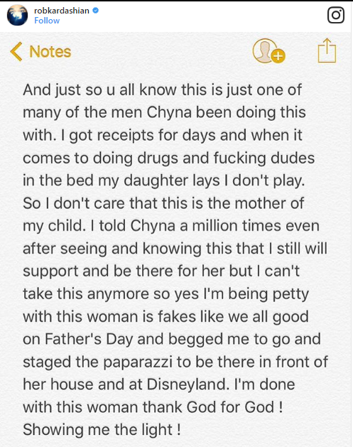 Rob said Chyna has been cheating on him with a number of men, adding that she told him she’s going to have yet another baby daddy.