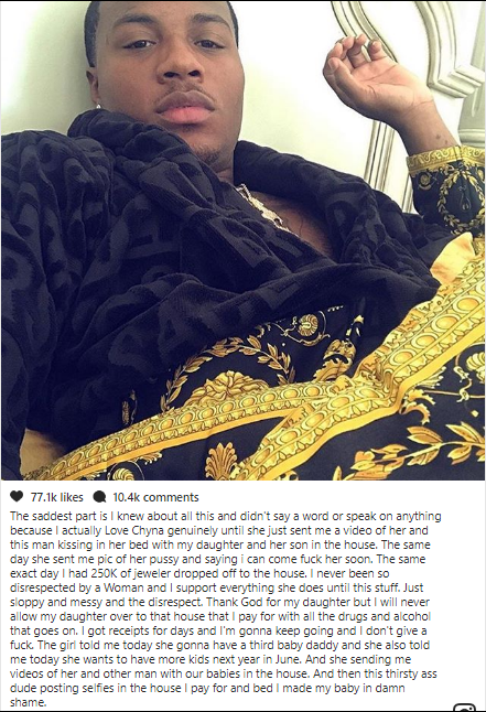 Today Chyna sent me a video after I just bought her 250K of jewelry and she sends me this video… of another man in our bed pic.twitter.com/3rE4luXilJ