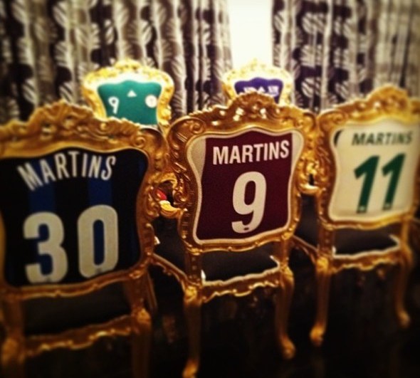 The 28 year old striker has moved around quite a bit and to commemorate his wandering in the world of football, he has used the jerseys of the clubs he has played for as upholstery for the chairs in his house.