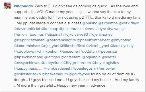 Popular Nigerian rapper, Olamide recently had a blast at his self-titled concert tagged OLIC (Olamide Live In Concert) and the YBNL boss took to social media to show his appreciation to all who supported him at the event.