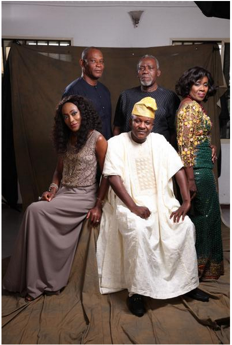 Nollywood veterans, Nobert Young, Olu Jacobs, Joke Silva and other members of cast were on set at a recent photo shoot for Lufodo Academy of Performing Arts‘ film, Digging for Gold.