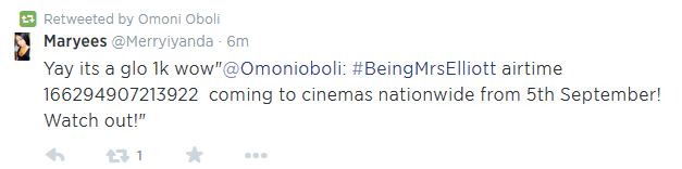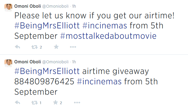 The actress took to twitter today to announce the release of the movie in cinemas on September 5, 2014. She didn’t just stop there, she went on to give out recharge cards of all networks to her fans on twitter.