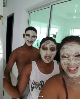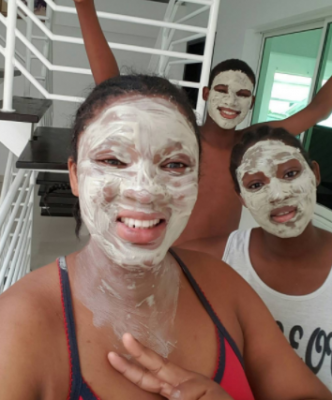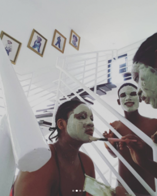‘Phew! Not sure what’s going on here but when aunty mimi says it’s Facial mask day… we better not argue! #family #africanparents,’ she captioned the photos.