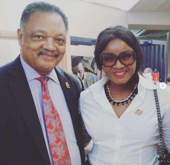 Nollywood actress Omotola Jalade Ekeinde, in Morocco, shared the same stage with American civil rights activist, Jesse Jackson.