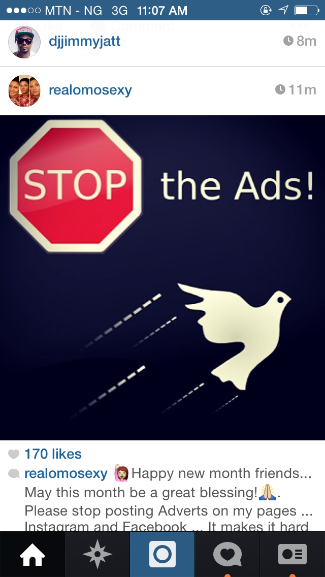 Nollywood actress Omotola Jalade-Ekeinde has had enough of fans using her facebook and Instagram pages for commercial purposes.