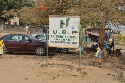 Verification Team in January 2019 at the UBE Primary School, New Kutunku ll, Gwagwalada verifying the school, needs school learning materials as nominated by Blessing Adams.